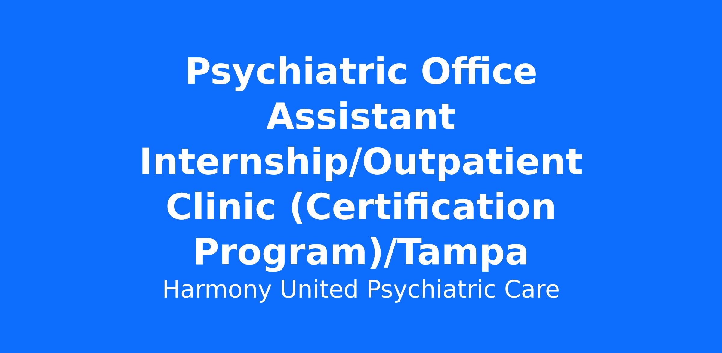 Company:Â Harmony United Psychiatric Care Job Title: Psychiatric Office Assistant Internship/Outpatient Clinic (Certification Program) Program Duration: 3 to 6 months (600 hours total) Schedule: Flexible, minimum 20 hrs/week with 10 hrs/day (Full office day) Location:Â Tampa