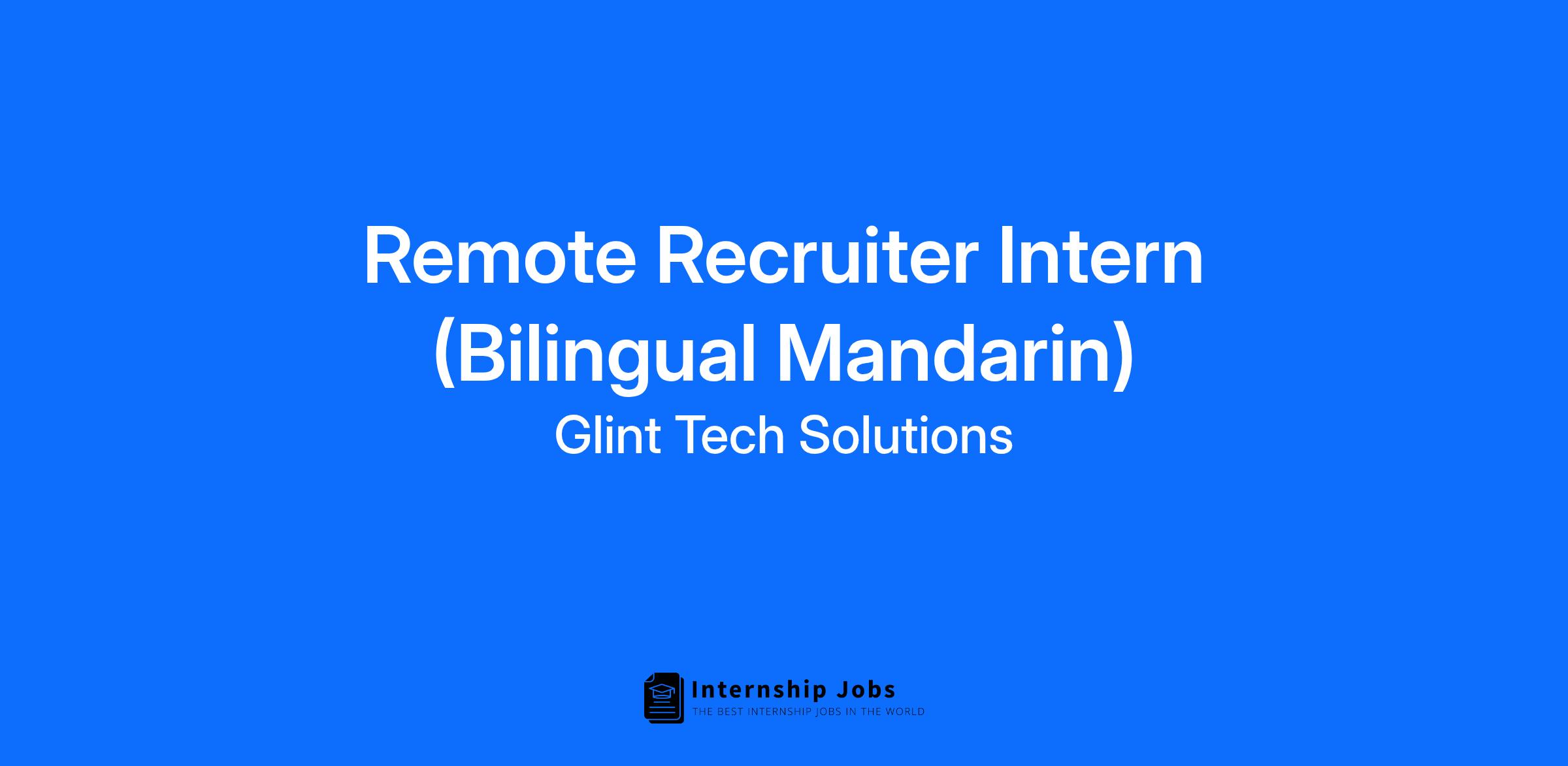 This is an intern role for a Recruiter (Mandarin Bilingual) at Glint Tech Solutions. The Recruiter will be responsible for sourcing, screening, and interviewing candidates, conducting language assessments, coordinating with hiring managers, and facilitating the recruitment process.
