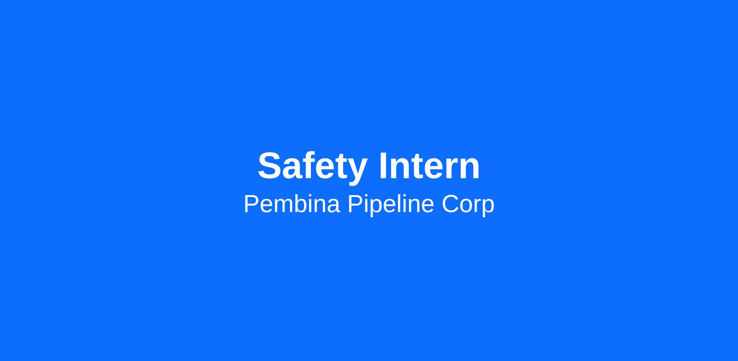 Pembina Pipeline Corporation’s Calgary office is actively hiring for a Safety Intern to join the team. This position reports to the Director, Process Safety in the Safety Service Unit, part of Pembina’s Project Delivery & Technical Excellence Division.