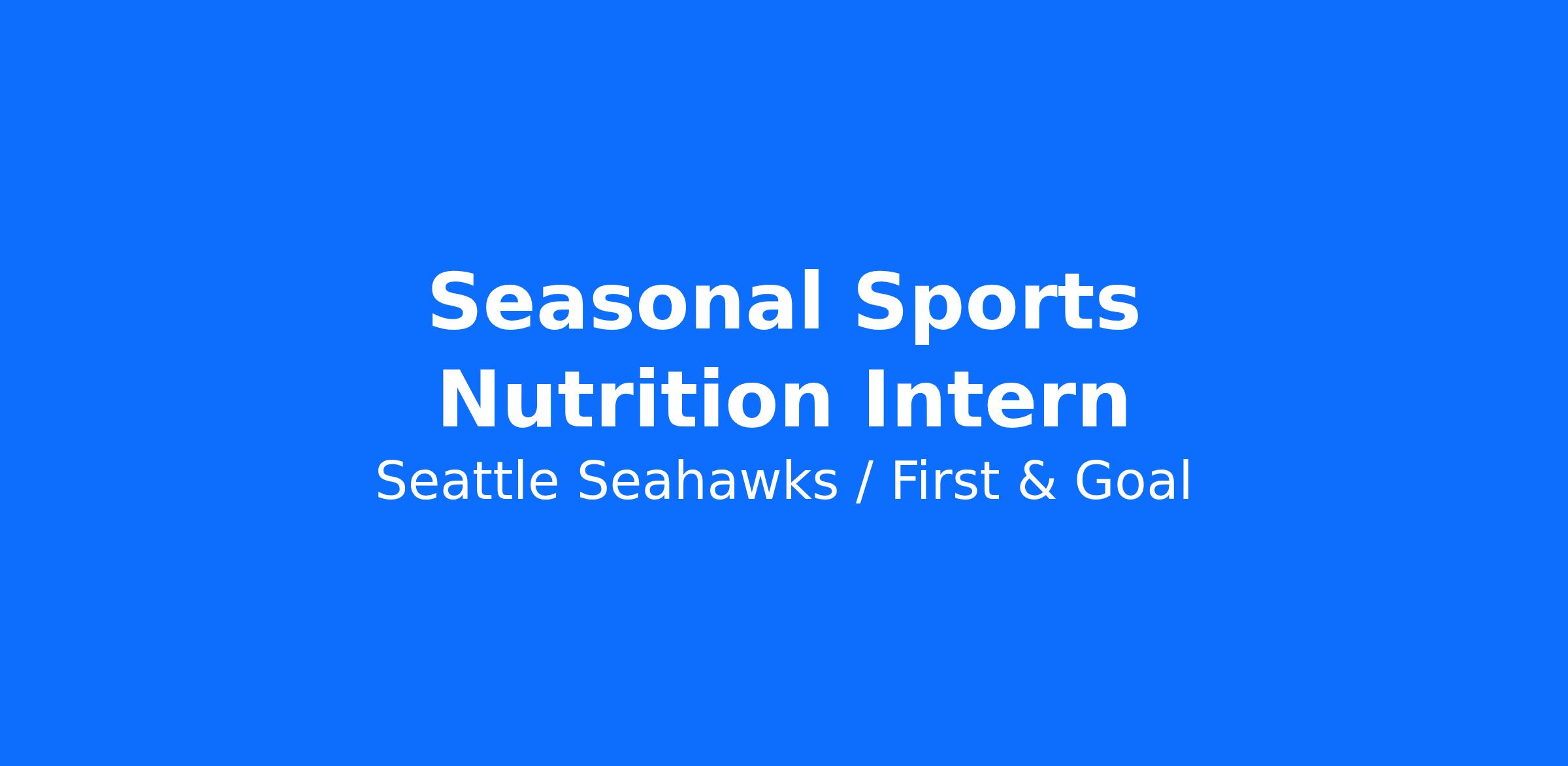 Job Title: Seasonal Sports Nutrition Intern Organization: Seattle Seahawks Reports To: Director of Performance Nutrition Location: Virginia Mason Athletic Center (VMAC) – 12 Seahawks Way, Renton, WA 98056 Timeframe: July 2026 – January 2027 (or the end of the season – Latest is February 14, 2027) Application Deadline: April 24, 2026 JOB SUMMARY The Seattle Seahawks are seeking a motivated Seasonal Sports Nutrition Intern to assist in the planning and execution of culinary, clinical and performance-based nutrition initiatives. This role provides hands-on experience in a professional sports environment, supporting players’ performance, recovery and overall health. JOB RESPONSIBILITIES Culinary and Foodservice Nutrition: (50%)