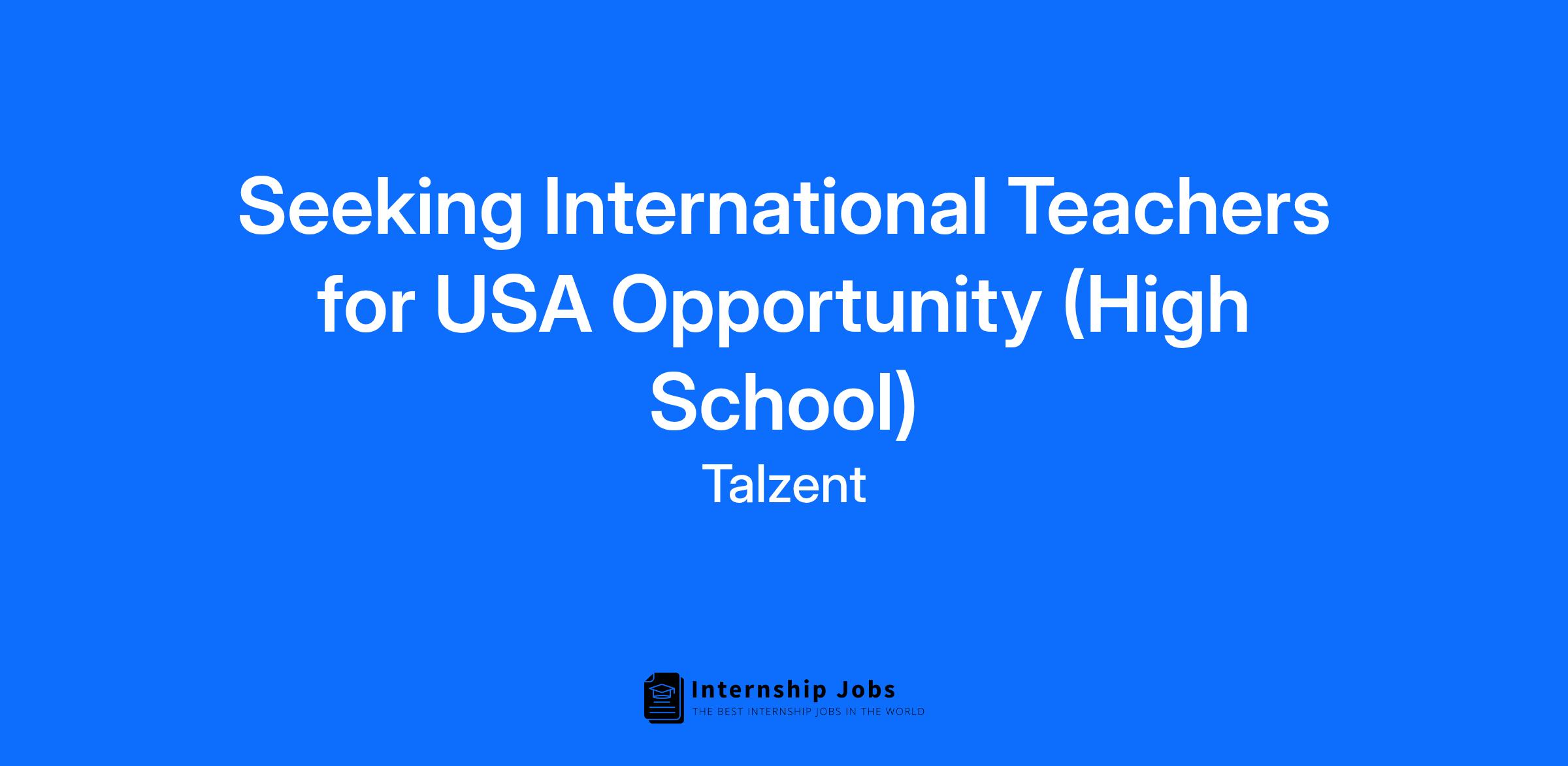 About Talzent: We are an education sourcing company locating the best educators globally to teach in classrooms across the United States. www.talzent.com / info@talzent.com