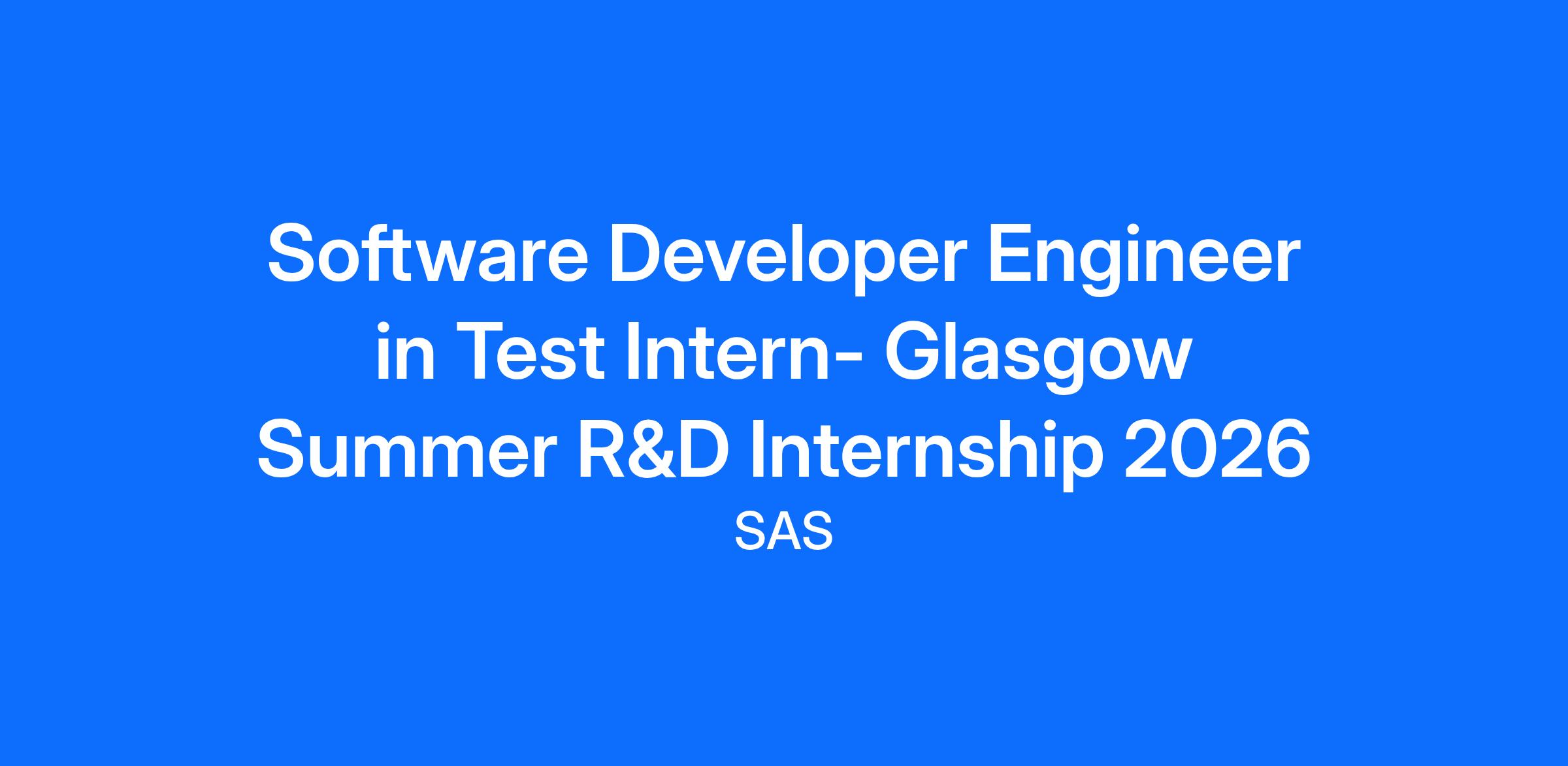 Glasgow Summer R&D Internship 2026
