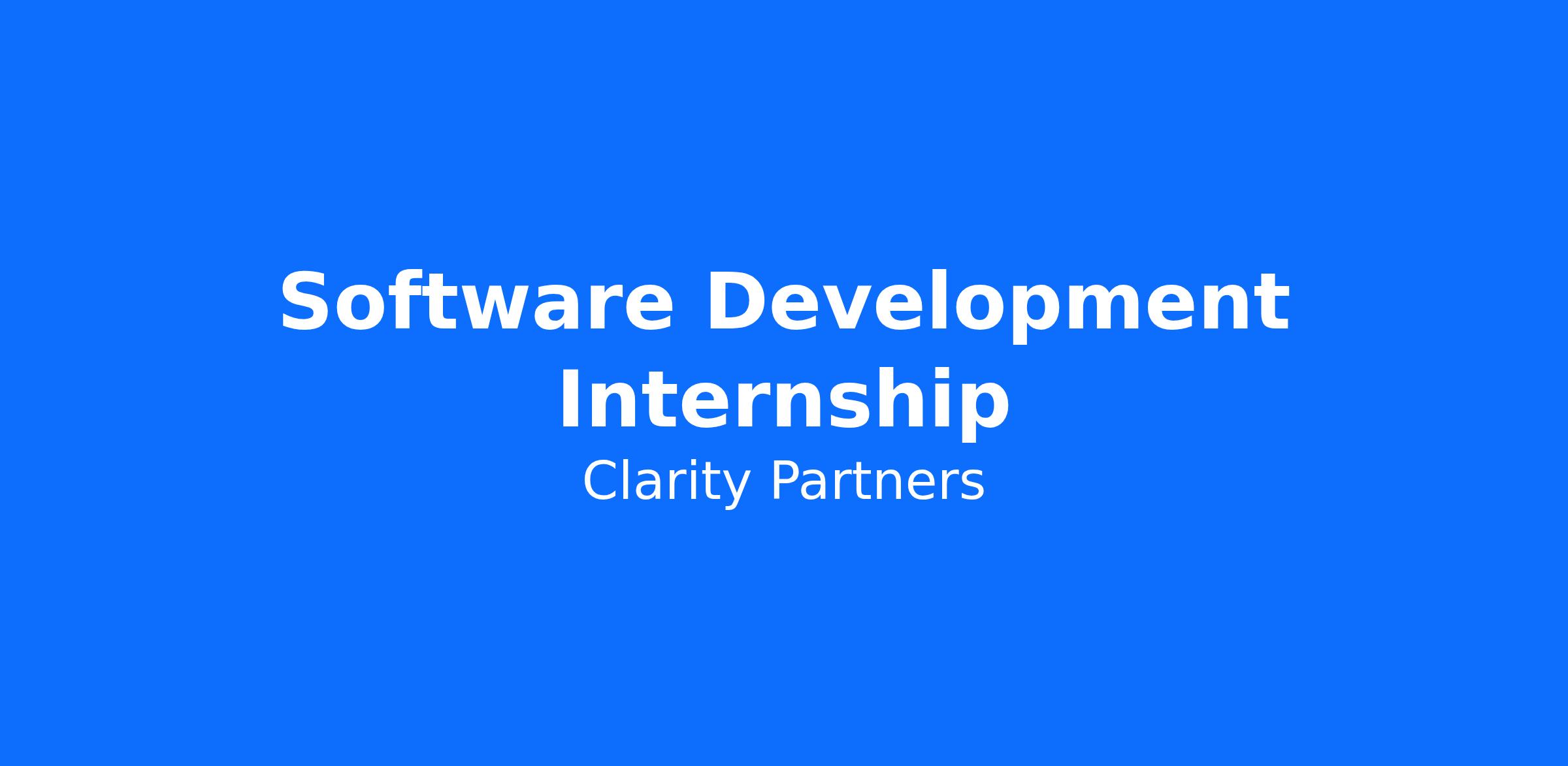 Clarity Partners is seeking Software Development Interns with strong technical instincts combined with the ability to think and communicate about how technology is used in the real world. This will be a Summer 2026 paid undergraduate internship in downtown Chicago.