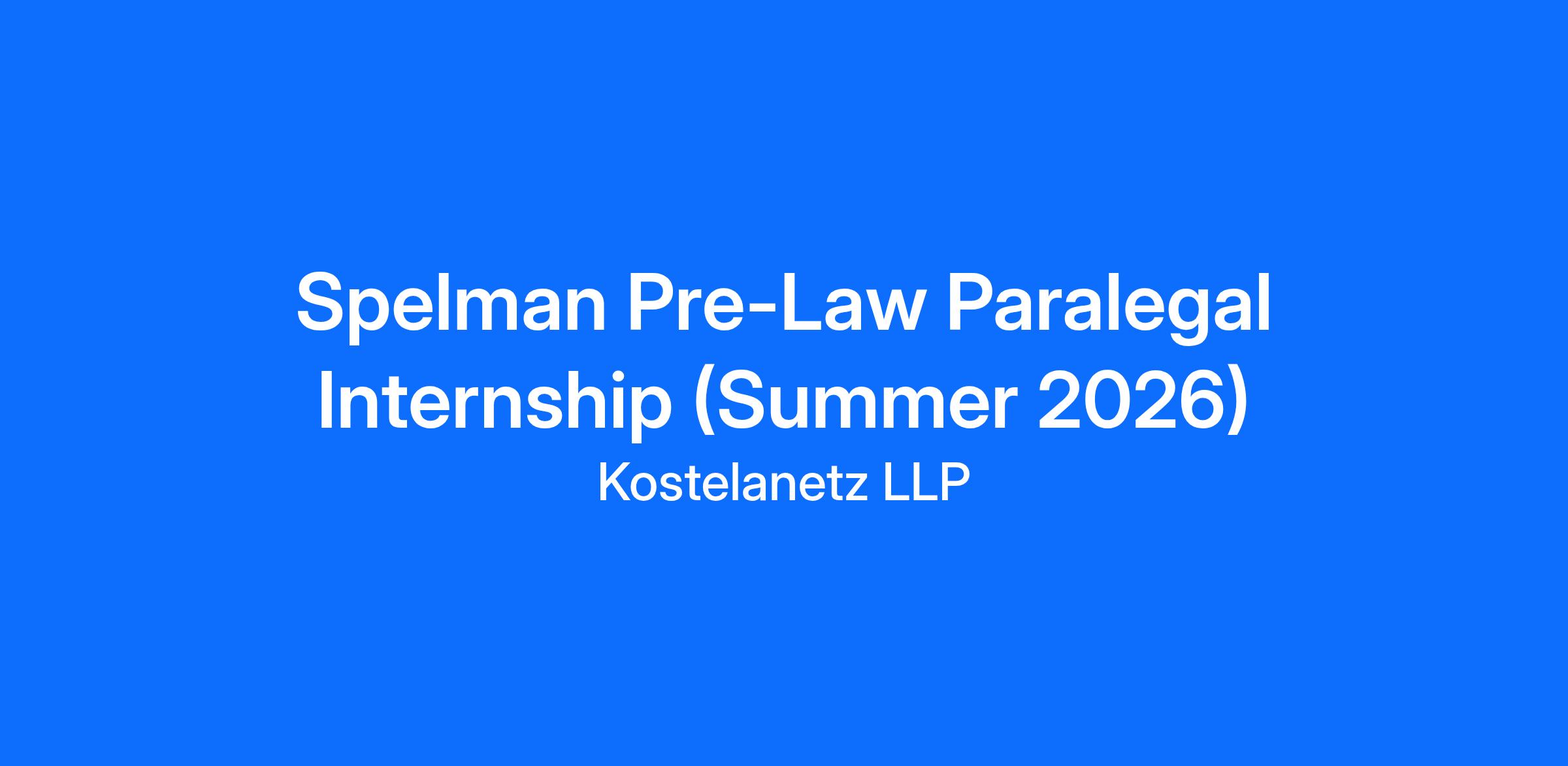 Kostelanetz LLP is a boutique law firm that offers a paid internship (at $38.46 per hour) to a Spelman College rising senior interested in joining the firm as a full-time pre-law paralegal for the summer. The internship is part of Kostelanetz’s broader program to develop ties with Spelman College.