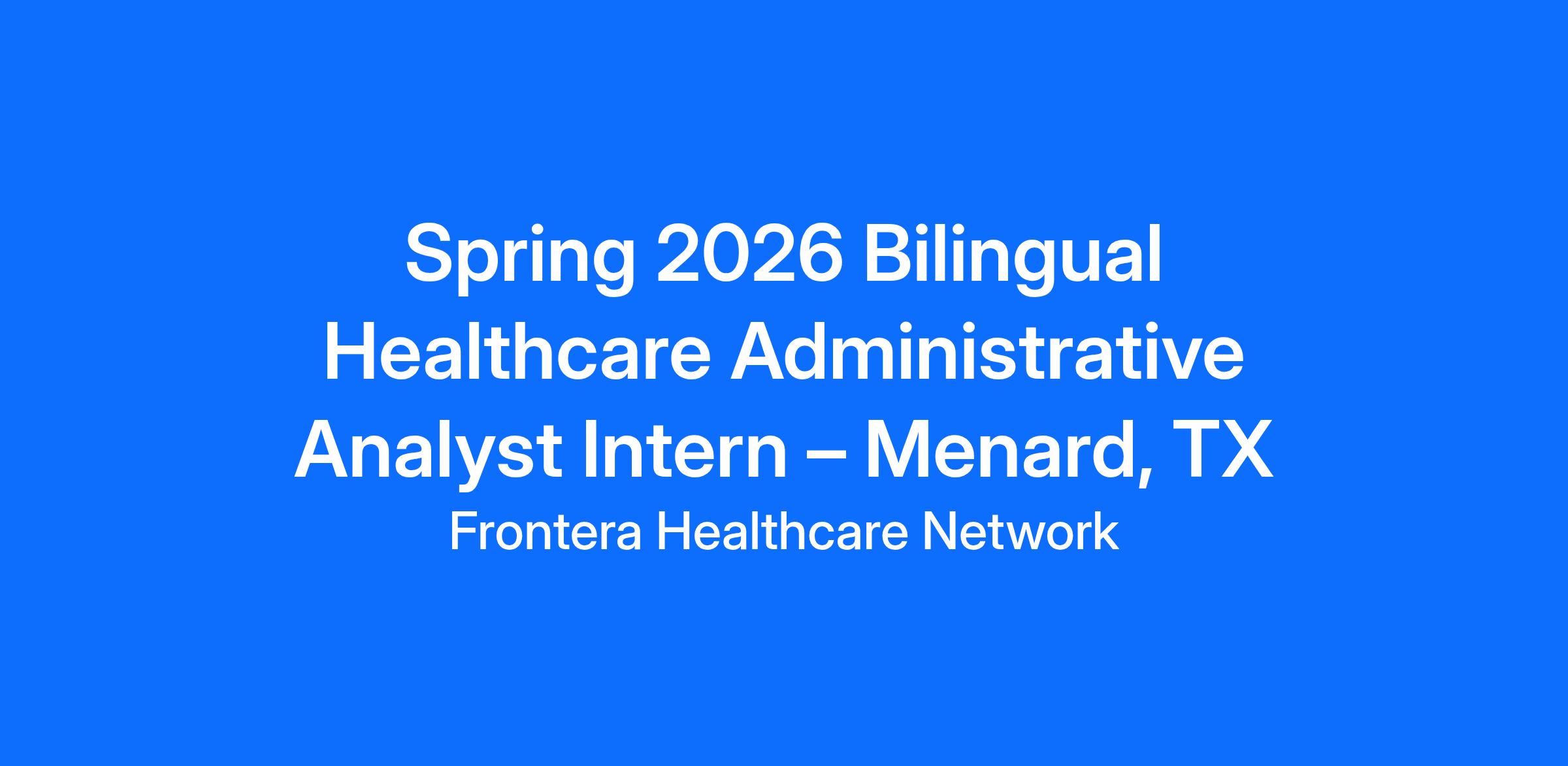 Spring 2026 Bilingual Healthcare Administrative Analyst Intern