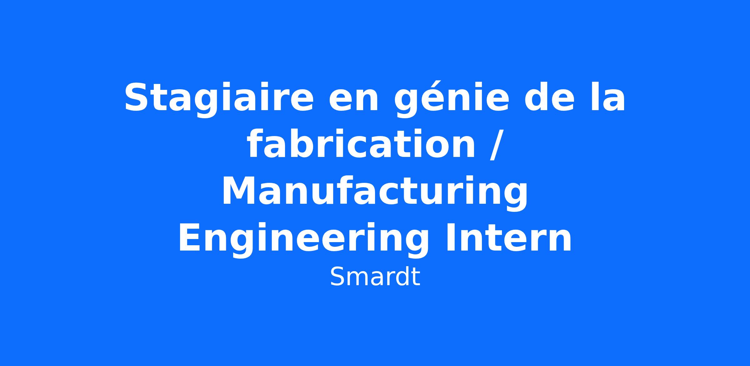 SMARDT poursuit l’expansion de ses activités en Amérique du Nord et est à la recherche d’un(e) stagiaire en ingénierie à fort impact afin de soutenir l’amélioration des outils, des processus et de la qualité des produits au sein de ses opérations de fabrication et de service.
