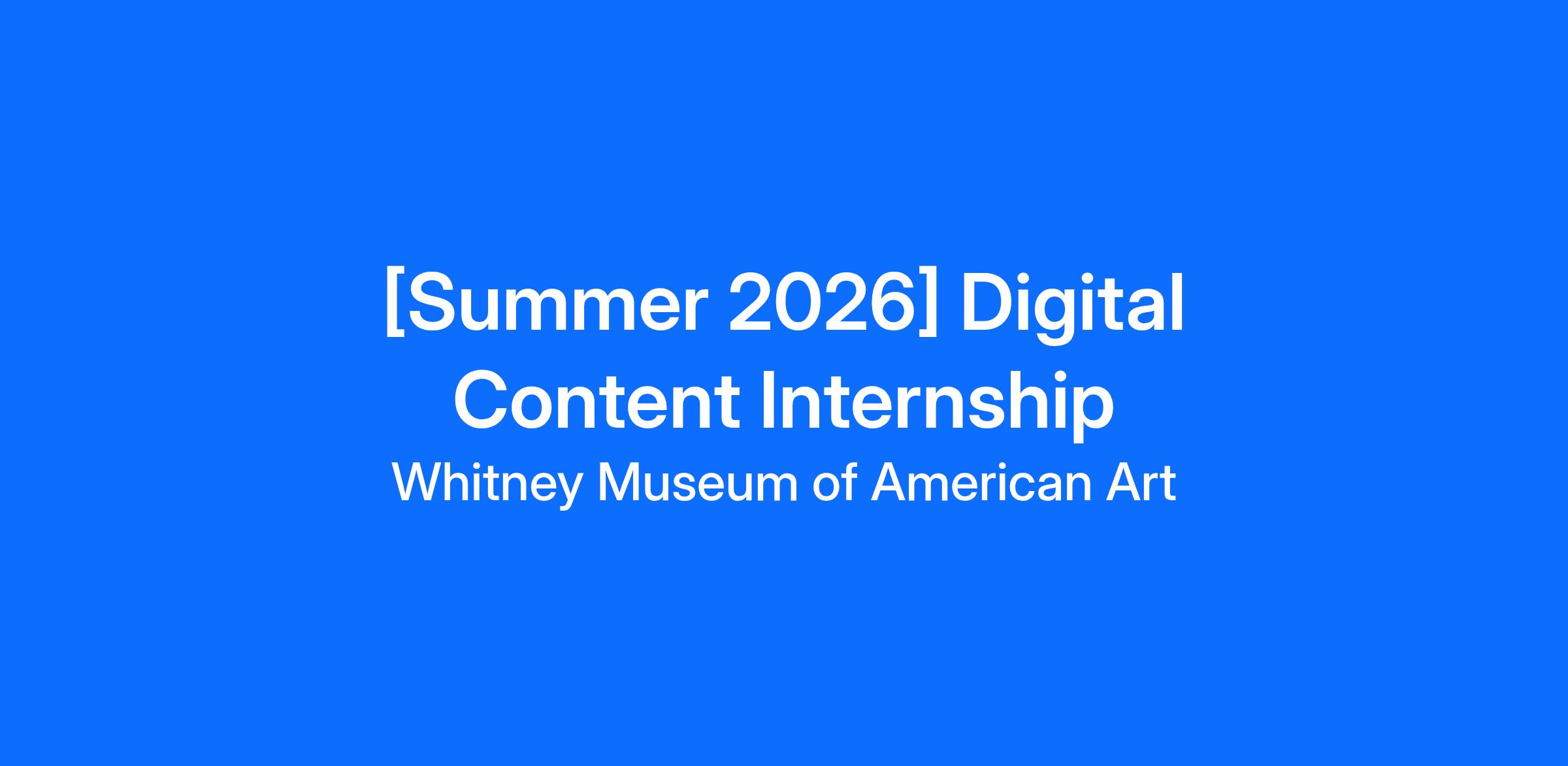 The Whitney seeks a Digital Content intern for Summer 2026. To view all Internship opportunities and to learn more about The Whitney's offerings, please refer to our Internships Page.