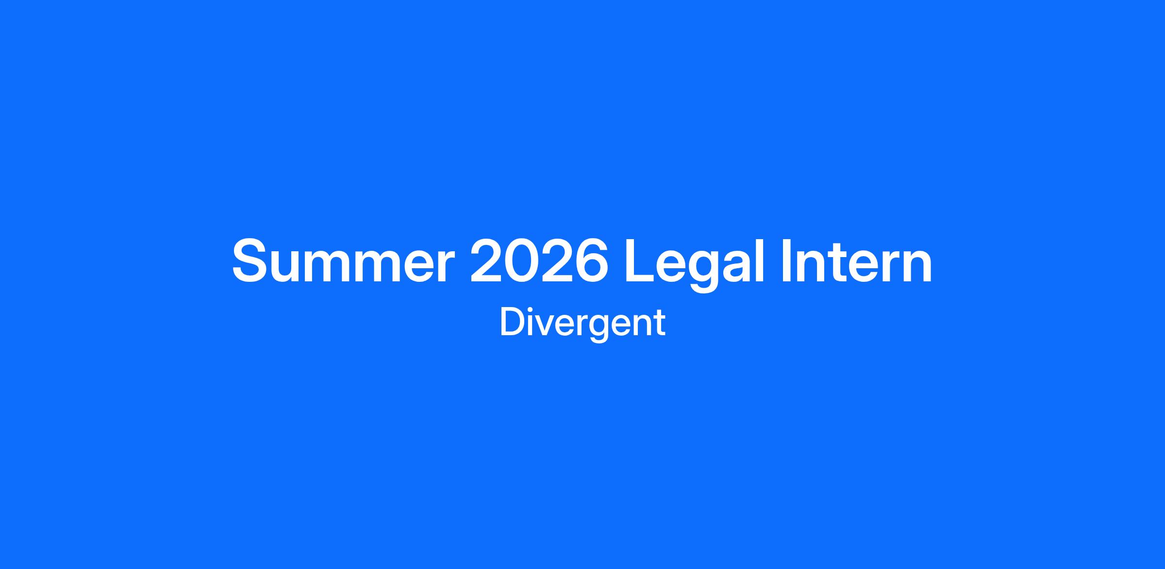 We are seeking a highly motivated and detail-oriented Legal Intern to join Divergent’s in-house legal department for Summer 2026. The intern will work closely with our legal team on a variety of transactional, regulatory, and compliance matters, gaining first-hand exposure to the day-to-day legal operations of a fast-moving technology company.