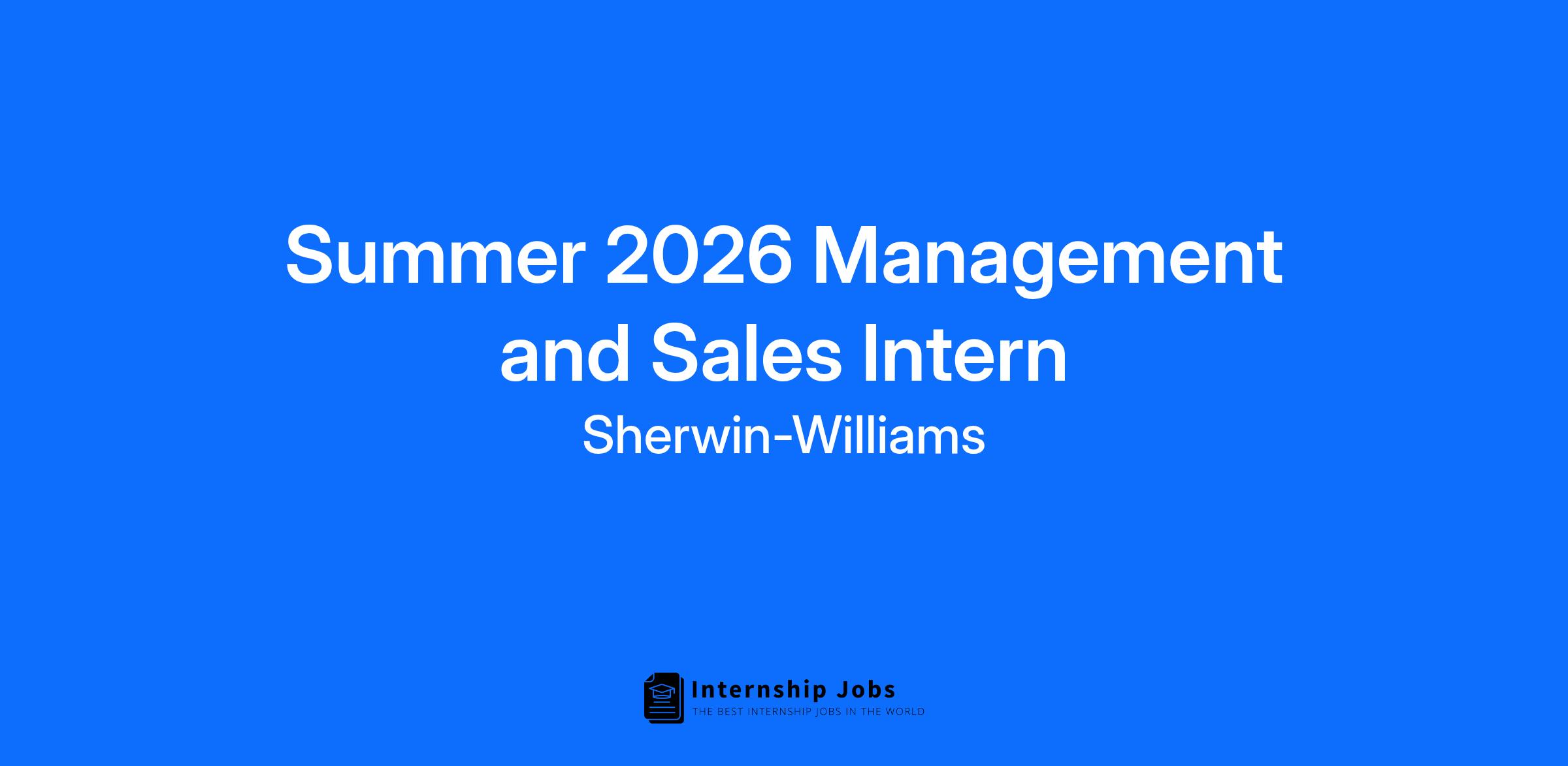 The Sherwin-Williams Management & Sales Internship is a paid, 10-12-week summer program offering hands-on experience in our retail stores, providing insight into management, sales, and store operations as well as meaningful customer experiences. Our store internship program is designed to provide you with a comprehensive learning experience through practical business-to-business and retail experience working in a paint store. You will gain insight into a career in outside sales by traveling with a Sales Representative and spending structured time with your management team. You will also complete a project that addresses critical business issues alongside your peers and with the support of leadership.