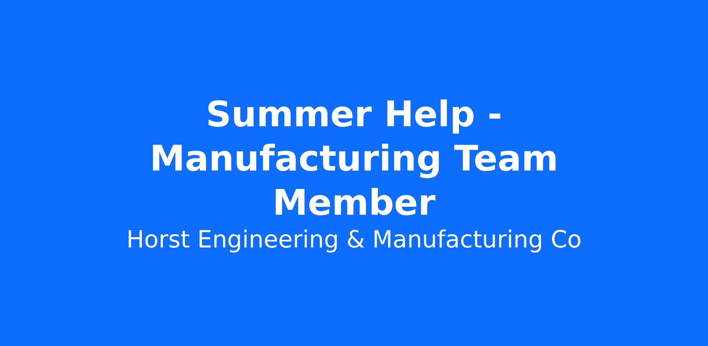 This position is a temporary non-benefitted seasonal position. This is a full-time 40 hours per week role. Â The Summer Help - Manufacturing Team Member will be responsible for performing light industrial manual labor on our manufacturing floor and assisting with organizational, cleaning and other projects on the manufacturing floor. Â The incumbent will be exposed to various work within the engineering, manufacturing, production, shipping, and quality departments. This role does not include company benefits or PTO.