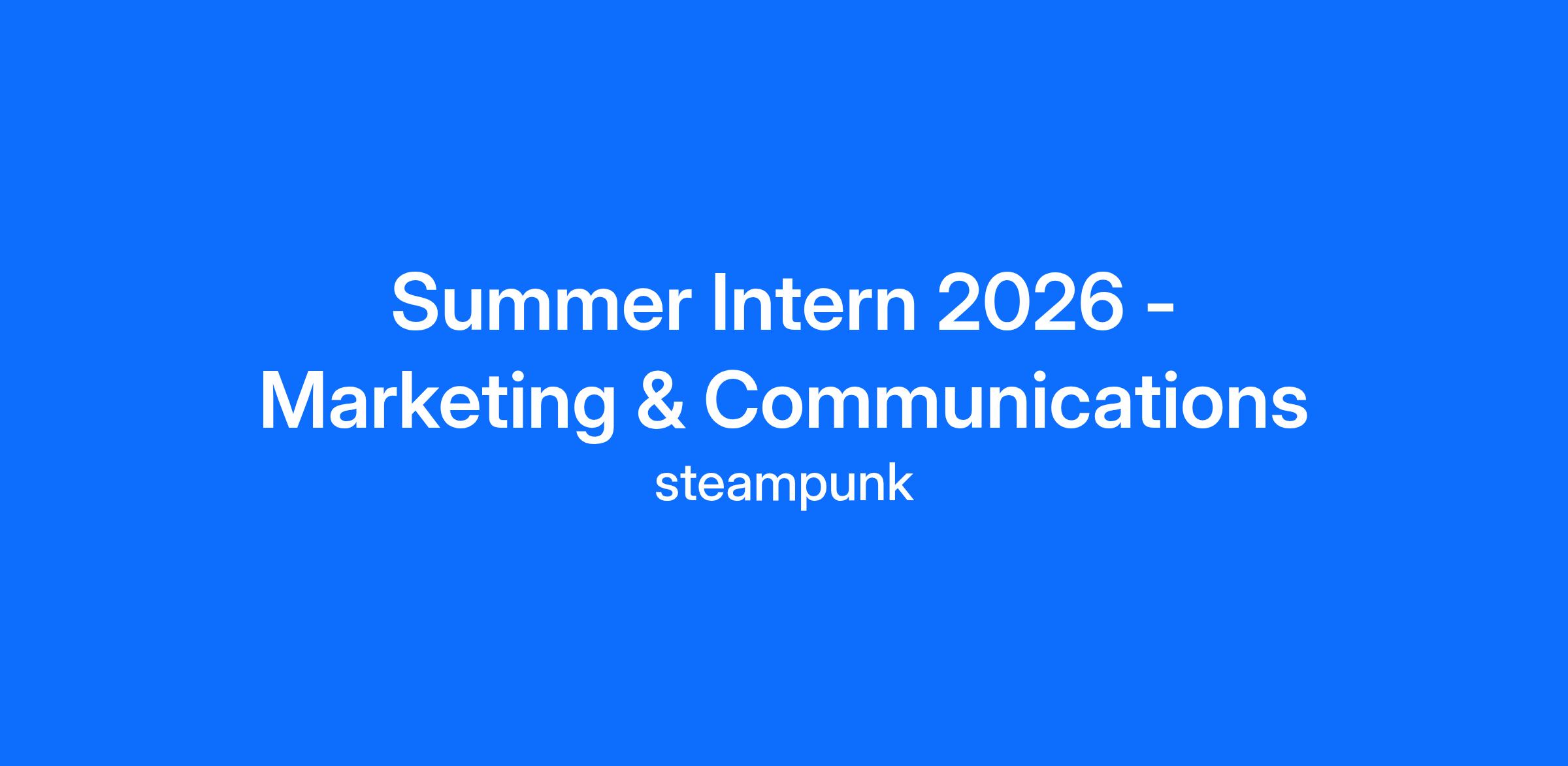 Steampunk is seeking a Marketing & Communications Summer Intern who will assist with special projects related to Marketing, Communications, Sales/Delivery Support, and Events associated with Steampunk. Special projects will be most closely aligned with Marketing and Communications, but could also be associated with assisting our client portfolios.
