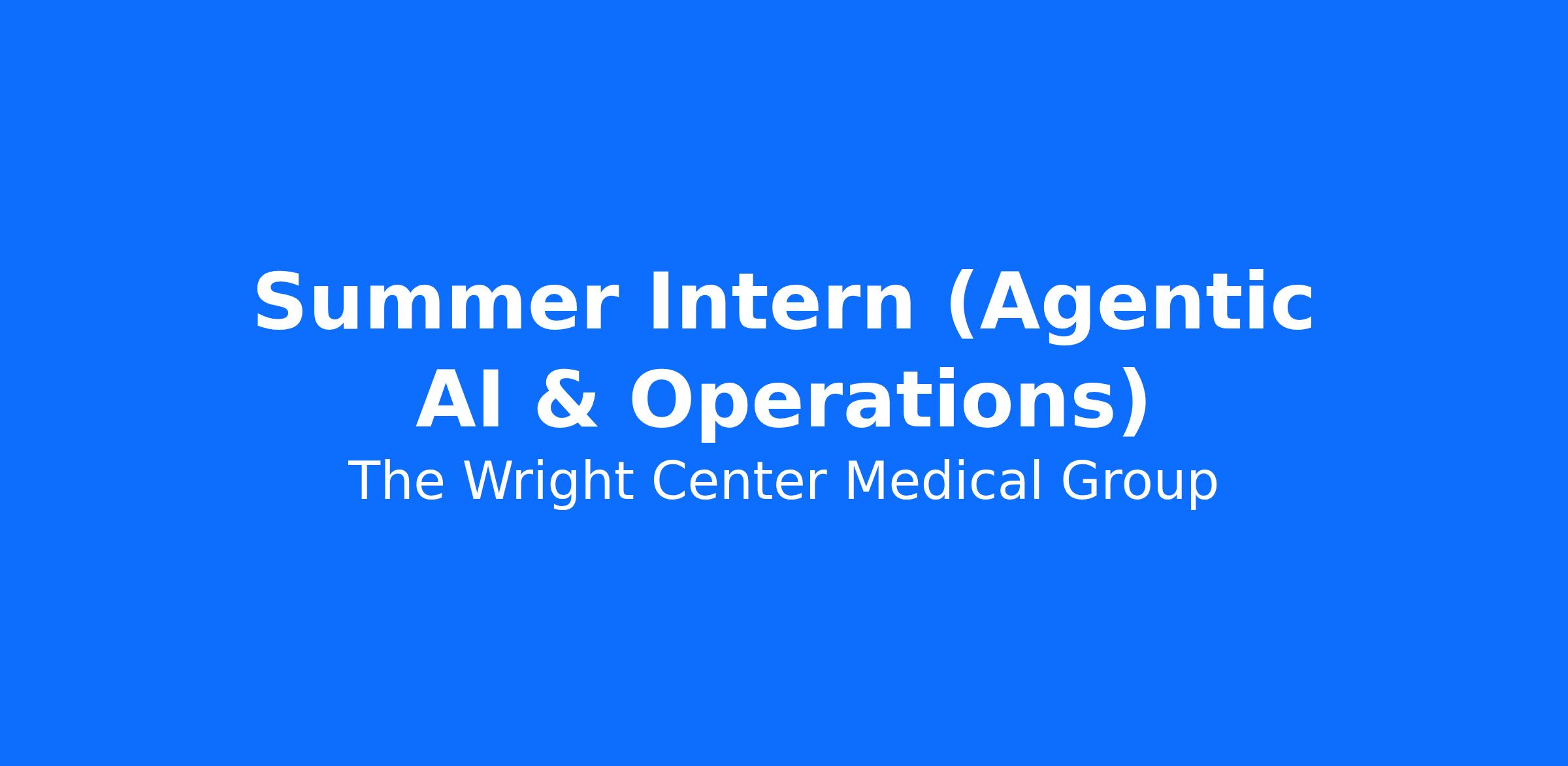 Position Overview: The Wright Center for Community Health and Graduate Medical Education is seeking an innovative and tech-forward Summer Intern to join our team. In addition to supporting general business operations and senior leadership, this role will specifically focus on identifying and developing Agentic AI solutions. You will serve as a bridge between technology and departmental workflows, working with internal teams to build autonomous agents that streamline operations and enhance workplace performance.
