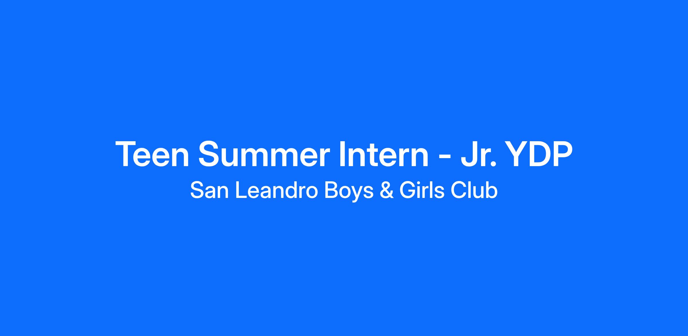 Title: 2026 Teen Summer Intern – Junior Youth Development Professional