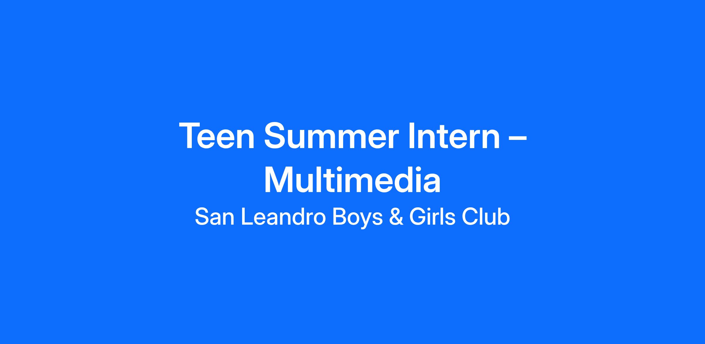 Title: 2026 Teen Summer Intern – Multimedia