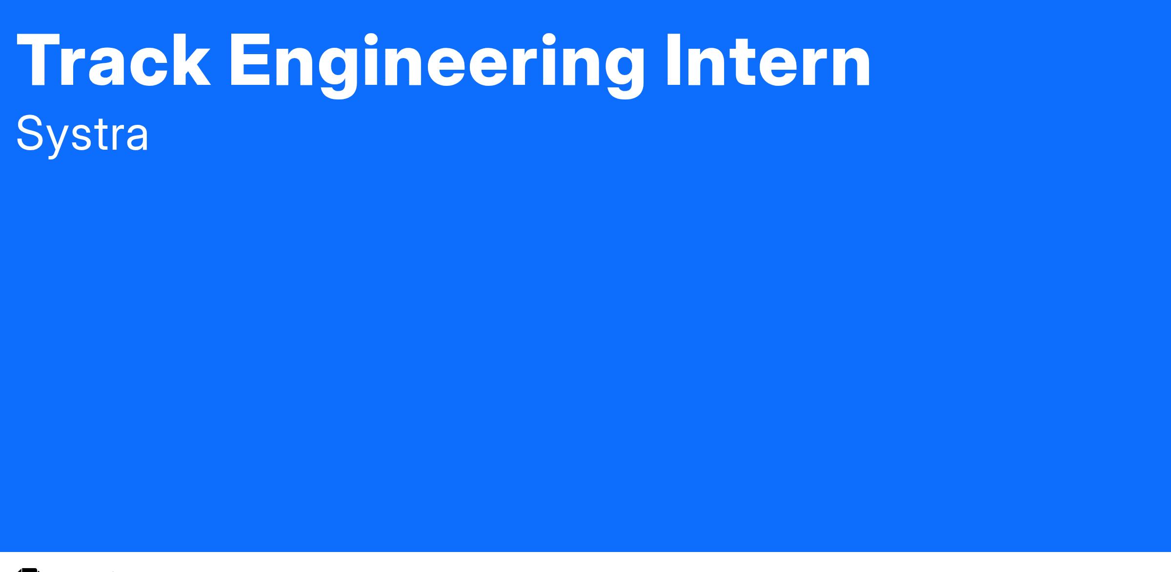 As a SYSTRA US Track Engineering Intern you will join a world-class team of high-performing engineers, designers, drafters and others who work collectively to ensure client projects continue to thrive while remaining on track and budget.