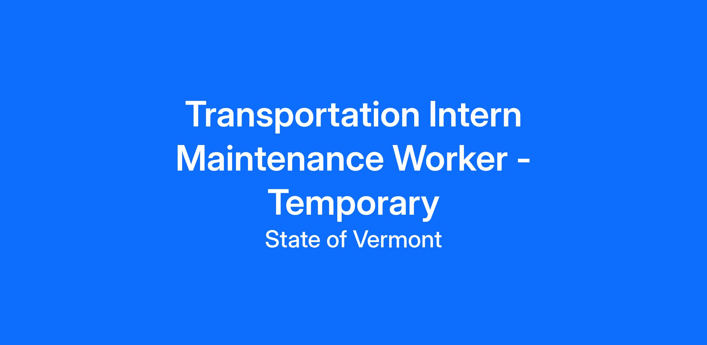 The Agency of Transportation is seeking an Intern Maintenance Worker for a position in the New Haven garage.