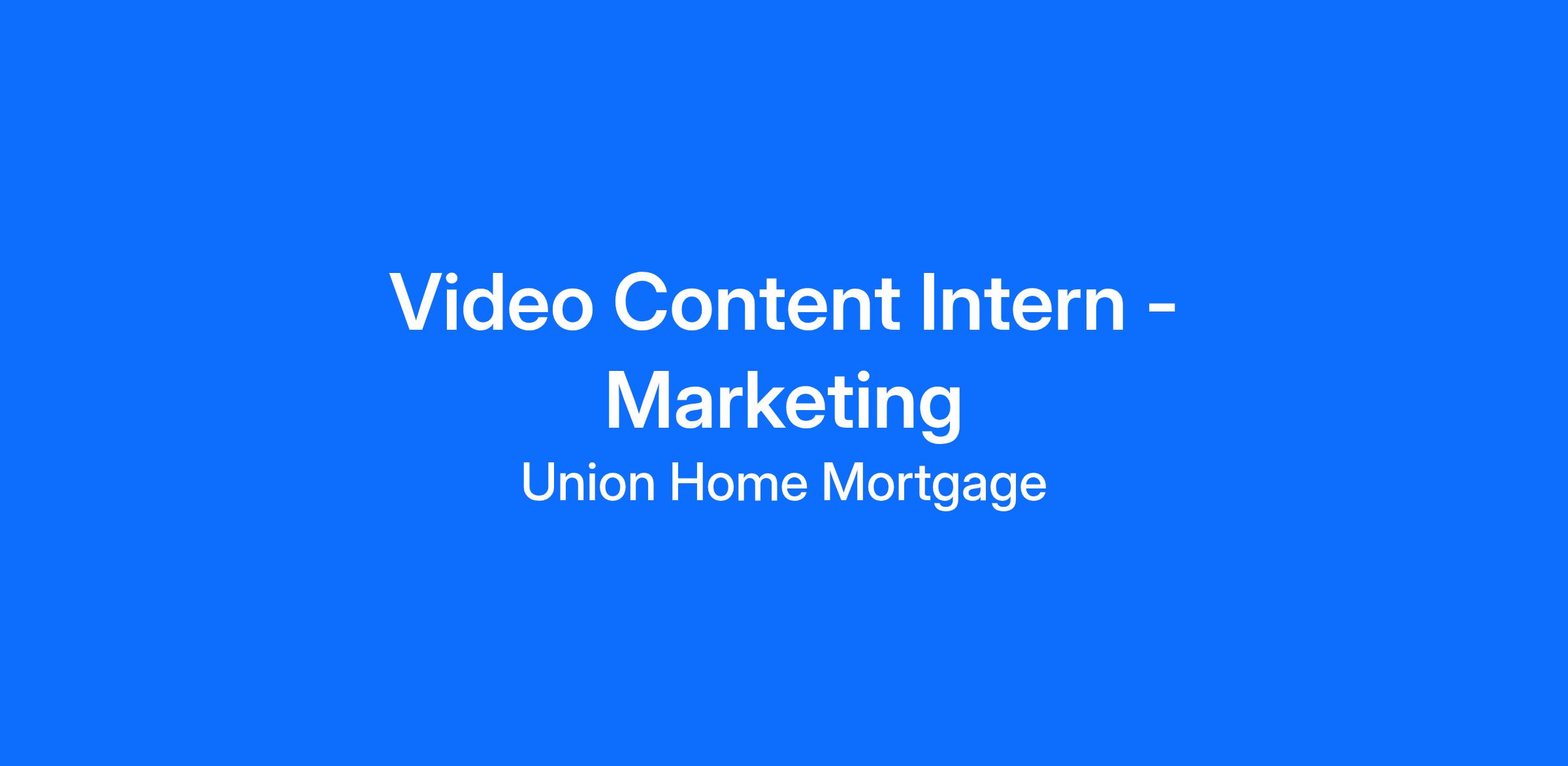 The Video Content Intern heavily contributes to the execution of marketing efforts towards corporate goals through a variety of touchpoints including content development through photography, animation, video production, editing and design. We’re looking for students who desire to be a part of fun team, are hungry to learn and look forward to seeing their work utilized in a meaningful way to build the Union Home Mortgage Corp. brands.